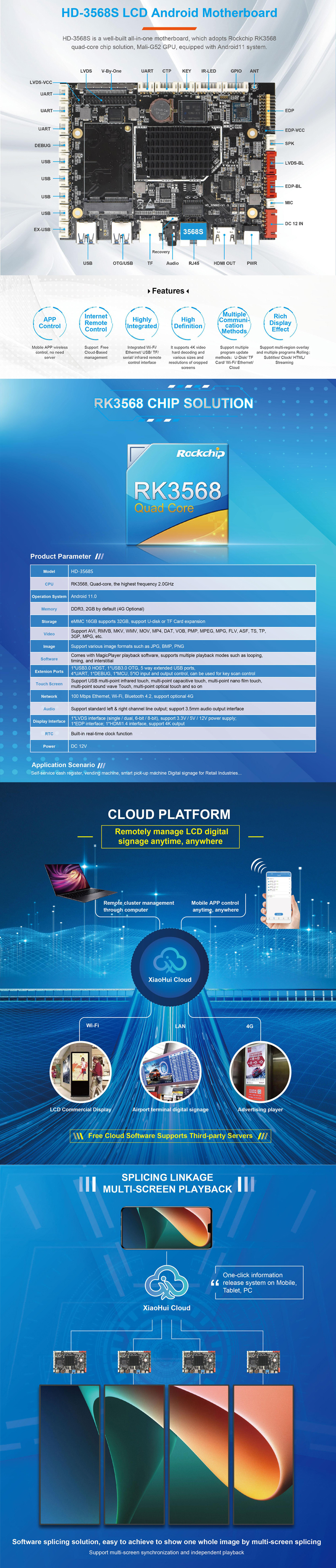 Foftware | Comes with Signworld CMS software, supports multiple playback modes such as looping. Software timing, and interstitial |